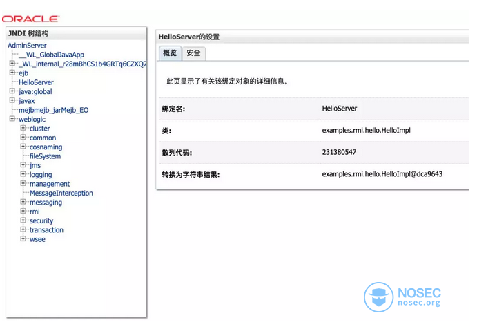 并且在服务器的JNDI树信息中可以看到HelloServer已存在: