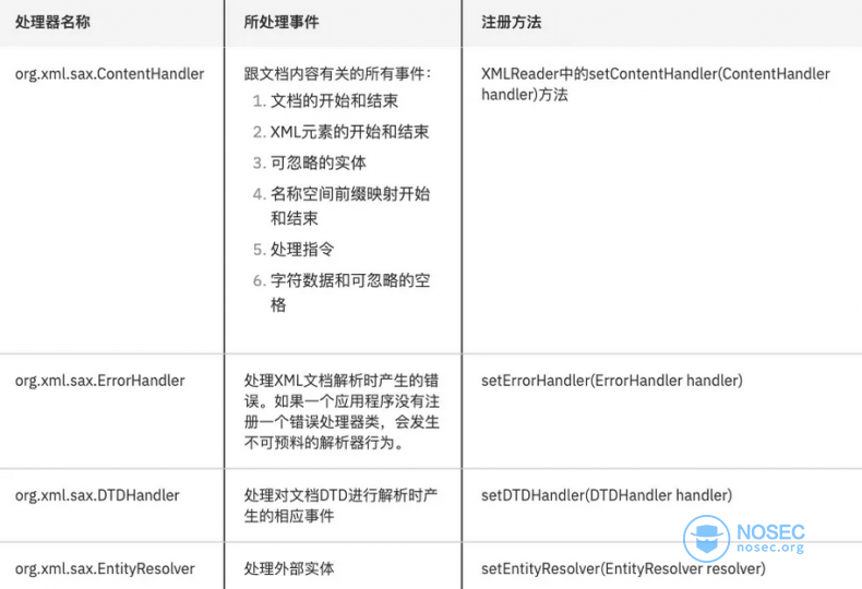 SAX是简单xml访问接口,是一套xml解析规范,使用事件驱动的设计模式,那么事件驱动的设计模式自然就会有事件源和事件处理器以及相关的注册方法将事件源和事件处理器连接起来。