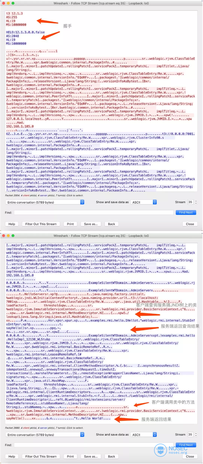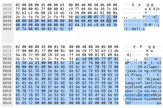 我们完成了一次正常的WebLogic RMI调用过程,我们也来看一下WebLogic RMI的调用数据包: