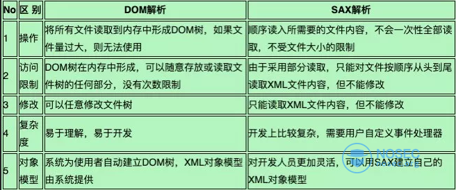 DOM和SAX其实都是xml解析规范,只需要实现这两个规范即可实现xml解析。二者的区别从标准上来讲,DOM是w3c的标准,而SAX是由xml_DEV邮件成员列表的成员维护,因为SAX的所有者David Megginson放弃了对它的所有权,所以SAX是一个自由的软件。