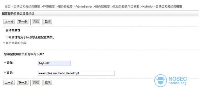 构建成功后,将jar包复制到WebLogic Server域对应的lib/文件夹中,通过WebLogic Server 管理控制台中的启动类和关闭类部署到WebLogic Server中,新建启动类如下:
