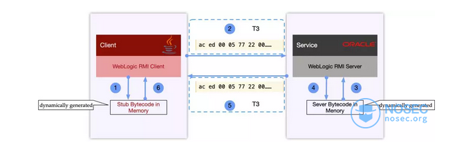 WebLogic RMI主要使用T3协议(还有基于CORBA的IIOP协议)进行客户端到服务端的数据传输