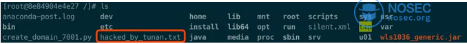 执行后去目标系统根目录下,可以看到hacked_by_tunan.txt这个文件被创建成功,漏洞触发成功。