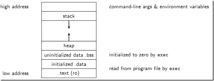 [ 注意:BSS段 和 data段的区别是 ,如果一个全局变量没有被初始化(或被初始化为0),那么他就存放在bss段;如果一个全局变量被初始化为非0,那么他就被存放在data段。]